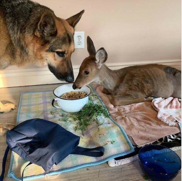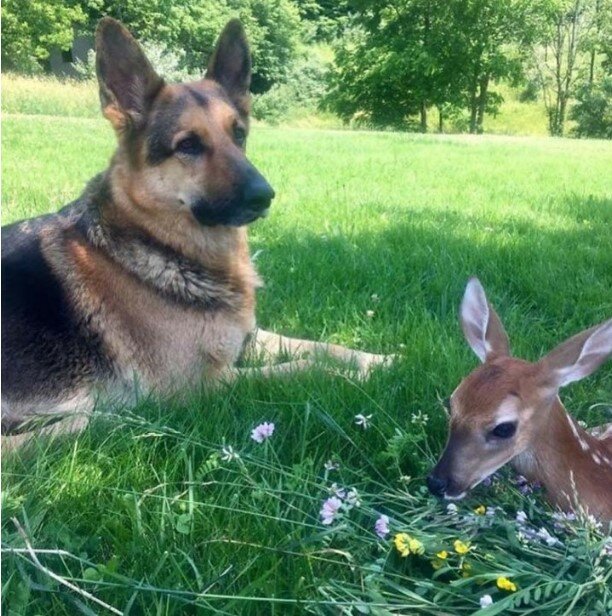 Dziś podzielimy się z Wami niesamowitą przyjaźnią owczarka niemieckiego z osieroconym jelonkiem.
