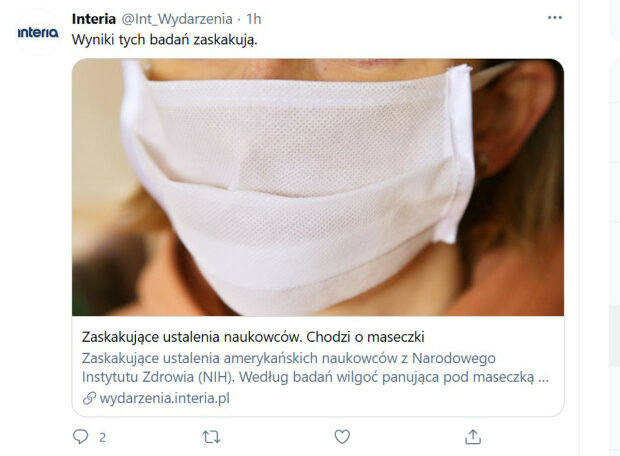 Amerykańscy naukowcy z Narodowego Instytutu Zdrowia (NIH) doszli niedawno to naprawdę zdumiewających wniosków, które mają przeczyć teoriom maseczkowych sceptyków, przekonujących, że gromadząca się pod maską wilgoć to samo zło i idealne środowisko do namnażania wirusów.