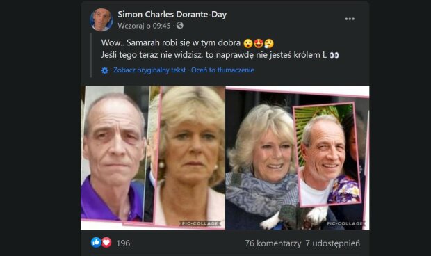 55-latek umieścił na Facebooku dwa swoje zdjęcia i dwa księżnej Kornwalii dla porównania, pisząc w opisie: „Jeśli teraz tego nie widzisz, to naprawdę nigdy nie zobaczysz”.