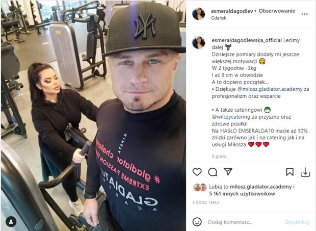 W zeszłym roku Esmeralda Godlewska nieco przybrała na wadze, lecz skrzętnie ukrywała swoje krągłości. Ostatnio przyznała się jednak, że w najgorszym momencie ważyła 80 kilogramów. Postanowiła to zmienić i właśnie rozpoczęła swoją przemianę pod okiem trenera. Po dwóch tygodniach już ubyły jej 3 kilogramy!