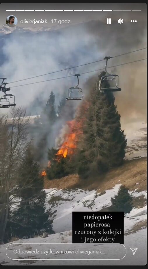 Kiedy rodzinna sielanka trwała w najlepsze, na stoku rozpętał się pożar! Rodzina była więc świadkami akcji ratowniczej. Na szczęście nikt z osób przebywających na stoku nie ucierpiał, a pożar został szybko ugaszony.