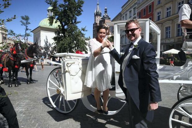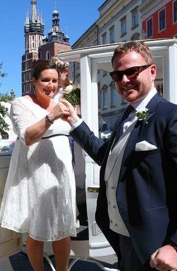 Ślub odbył się w Pałacu Prezydenckim w Krakowie, do którego nowożeńcy podjechali czarnym Rolls-Roycem. Na dodatek, ślubu udzielał Jacek Majchrowski, prezydent Krakowa.