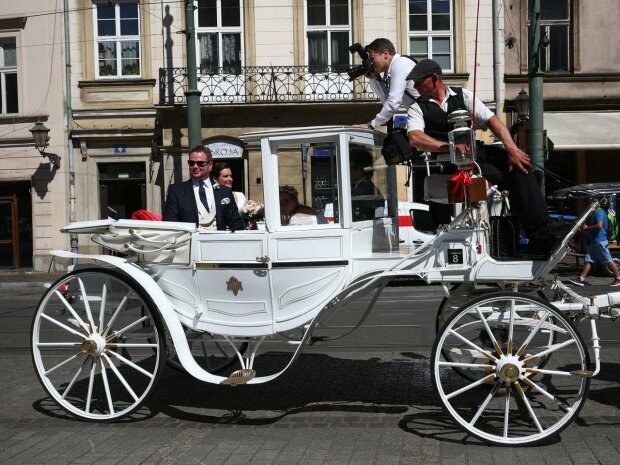 Chociaż wesele księcia nie odbyło się zgodnie z wcześniejszymi planami, możemy zobaczyć, że przyjęcie miało arstokratyczny charakter. Książę z hrabianką przejechali się po krakowskim rynku białą karocą, podobną do tej, jaka była na ślubie Kate i Williama. Goście przyjęcia też nie zapomnieli o charakterze wydarzenia – jedna z kobiet miała na głowie toczek, ubiór, który utożsamiany jest z dworem brytyjskim.