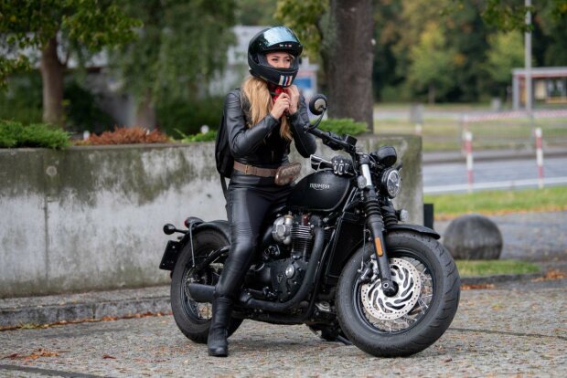 Pod gmach Telewizji Polskiej była Miss Polonia podjechała motocyklem, który wart jest ok. 60 tys. złotych. Trzeba przyznać, że wyglądała na nim bezkonkurencyjnie.
