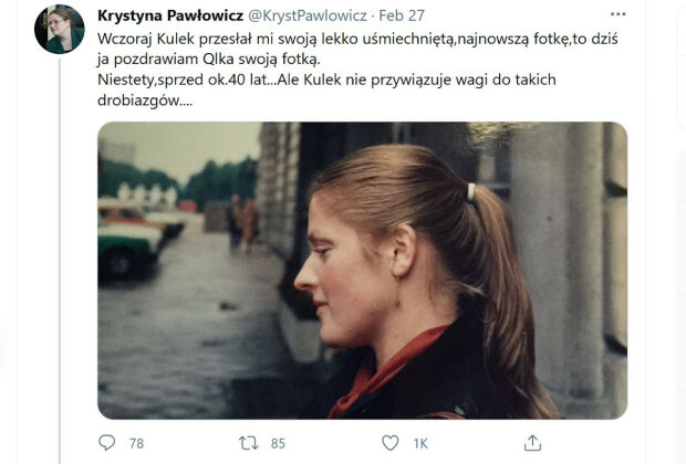„Miałam na tym zdjęciu ok.25 - 27 lat. Byłam asystentem na UW, myślałam o doktoracie. Ale wkrótce pojawiła się Solidarność i najpierw robiło się inne, ważniejsze rzeczy...” – przyznała Krystyna Pawłowicz w opisie zdjęcia, cytowana przez „Super Express”.