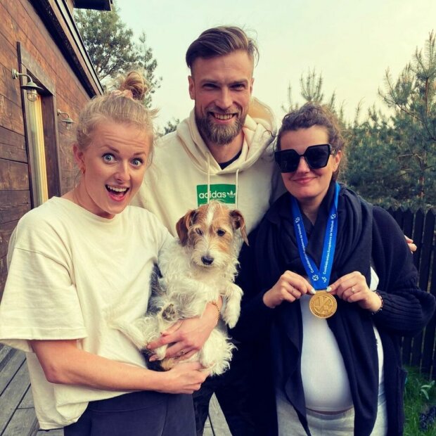 Całe show i uwagę na zdjęciu skradła jednak ukochana Wrony. Zofia jest w zaawansowanej ciąży, którą widac na pierwszy rzut oka i którą podkreśliła domową, luźną stylizacją. Włożyła na siebie biały T-shirt opinający brzuszek, dresy oraz czarny kardigan. Pozuje do zdjęcia z medalem Joanny Wołosz i ma uśmiechniętą minę.