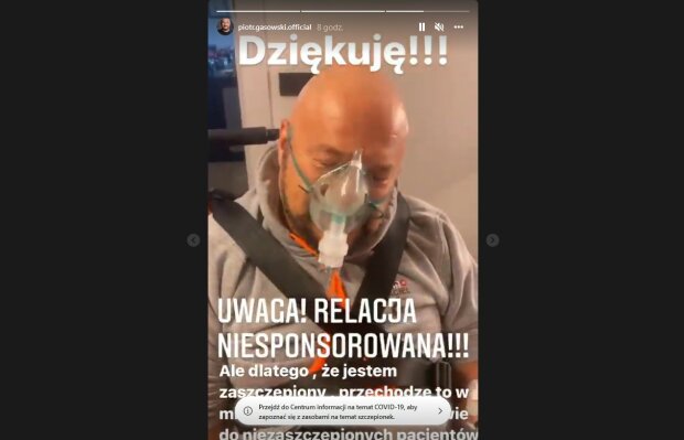 Gąsowski przy okazji podziękował ratownikom medycznym za świetną opiekę. Prowadzący „Twoja Twarz Brzmi Znajomo” przekazał, że przechodzi koronawirusa mimo szczepienia, ale ma lekkie objawy, w przeciwieństwie do innych pacjentów wokół niego, którzy nie mają szczepionki.