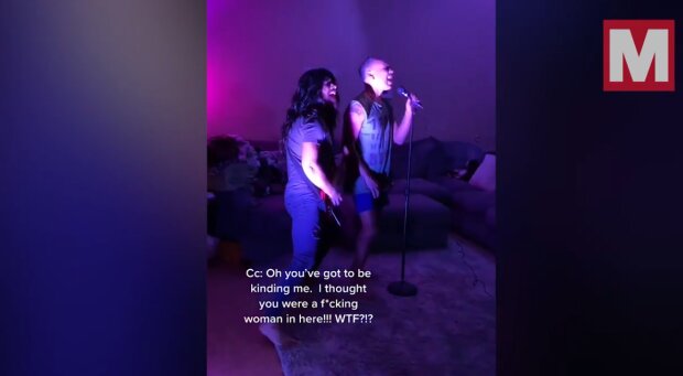 Kiedy Meggie otworzyła drzwi przeżyła ogromny szok widząc męża w przebraniu, który wspólnie z kolegą postanowili urządzić sobie wieczór karaoke. "To jakieś jaja" - powiedziała kobieta - "Byłam pewna, że jesteś tu z jakąś inną kobietą".