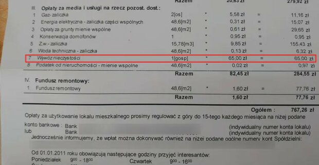 Właśnie wyjęłam ze skrzynki podwyżkę czynszu i w niej 227 zł za śmieci... Gospodarstwo 2-osobowe. Jest to największa, jeśli chodzi o kwotę, pozycja w czynszu. (...) Skandalicznie dużo to jest