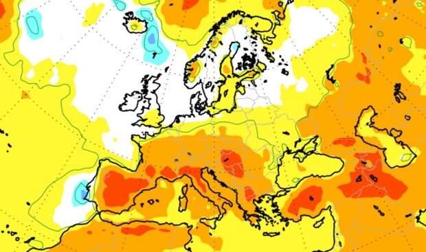 Większość południowej i południowo-środkowej Europy jest cieplejsza niż zwykle. Wynika to z rozszerzającego się obszaru wyższego ciśnienia od południa. Europa Północna i Skandynawia są bliższe średniej temperaturze. Warunki te sugerują, że możliwe są silne letnie upały, być może trwające dłużej niż zwykle i przy wyższych temperaturach.