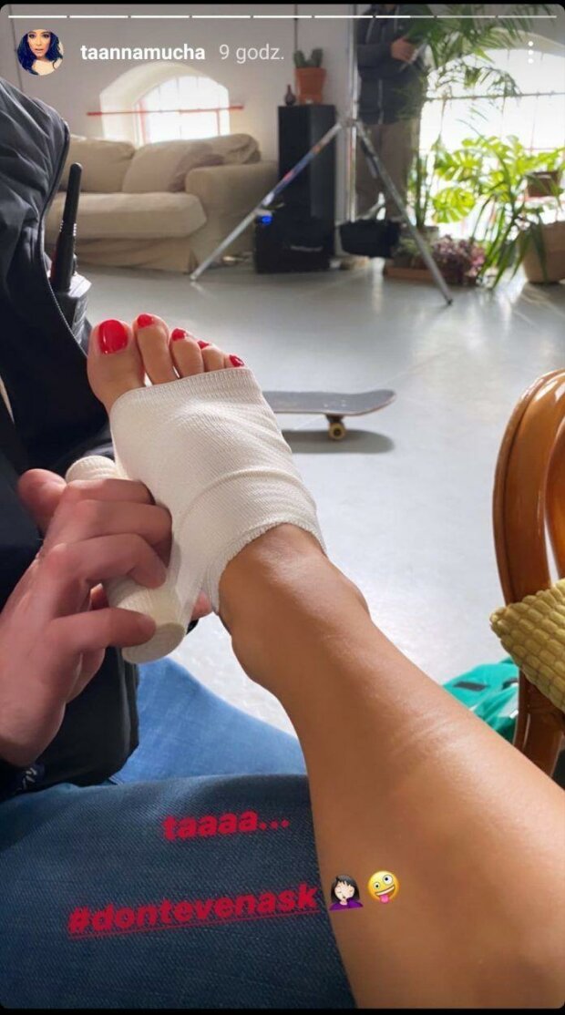 Anna Mucha podzieliła się zdjęciem, na którym widać, że ma zabandażowaną nogę.