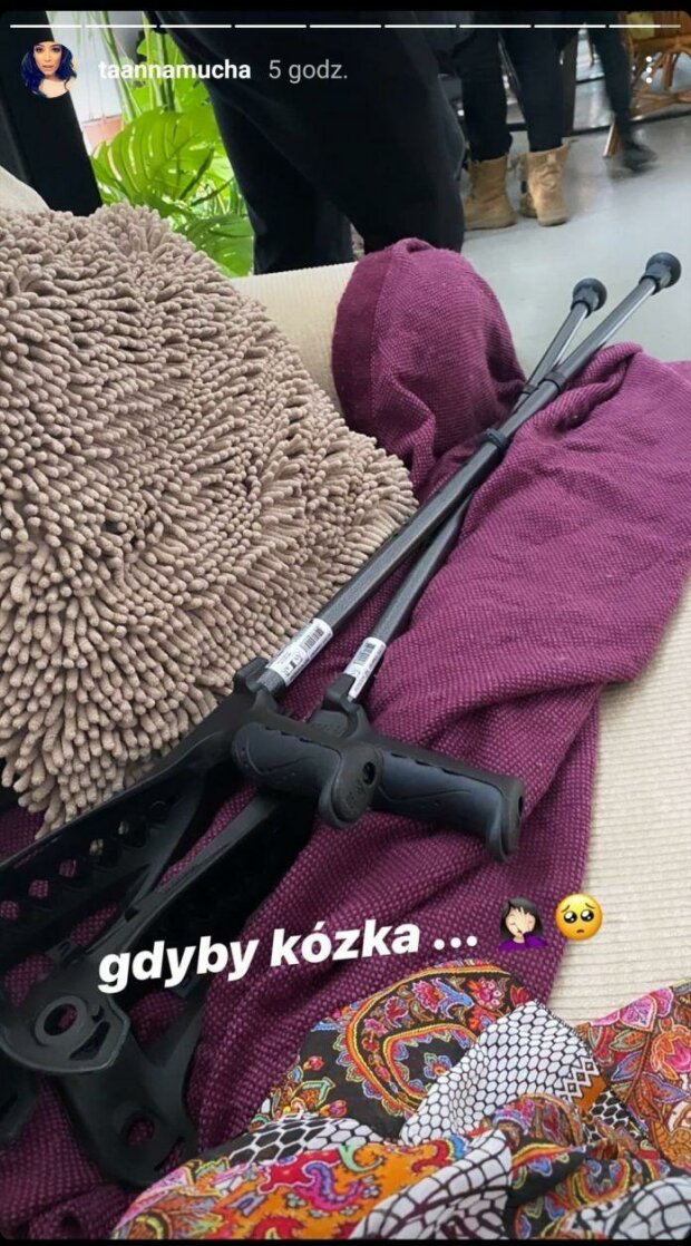 Okazało się, że Anna Mucha miała ostatnio wypadek. Prawdopodobnie doszło do niego na planie filmu „Kogel-Mogel 4”, w którym pojawi się aktorka. O swojej sytuacji Anna poinformała za pomocą Instagrama. Na jej InstaStoru pojawiło się zdjęcie, na którym widać, że ma obandażowaną stopę oraz dwie kule.